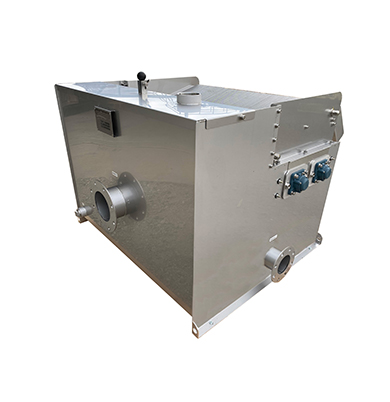 公称長さ600㎜の2組のプレートを交互に配置させ入り口側から出口に向かって傾斜させ構成したろ過部を連続的に平行運動を行うことで、出口方向に固形物を搬送すると同時に固液分離させることが出来る。この時、一切の洗浄水を使用しない。出口に向かって上り傾斜であることと、原水の戻り管を有していることから回収した固形物側に汚水が混入する事が起きない構造である。ある。また、ふん尿混合などの汚水のようにSS30000㎎/㍑のふん尿であっても、目詰まりすることなく連続的にスクリーニングする事が出来る。